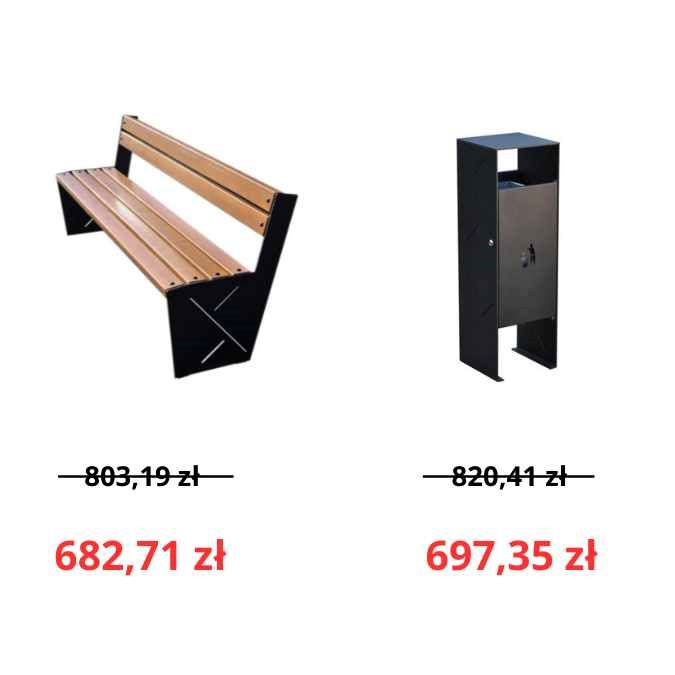 1. Zamów od 1 do 4 kompletów (ławka Nevi + kosz Nevi) i otrzymaj -15% rabatu na całe zamówienie.